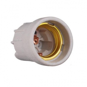 Патрон Е-27 осуществляет соединение цоколя лампы с электрокабелем и одновременно фиксирует ее в светильнике, люстре или просто удерживает в подвешенном состоянии.