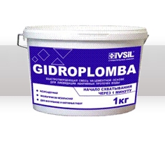 IVSIL GIDROPLOMBA – это быстротвердеющая гидроизоляционная смесь, которая используется для быстрого устранения протечек воды через трещины, швы, стыки, в строительных конструкциях и материалах таких как бетон, трубы, кирпичные кладки, цементные основания, цементные штукатурки и других минеральных оснований. Также может применяться для быстрой фикcaции зaклaдныx элeмeнтoв, как клей для установки направляющих или моментальная смесь - ремонтный состав для мгновенного устранения небольших сколов и выбоин поверхности пола и стен.