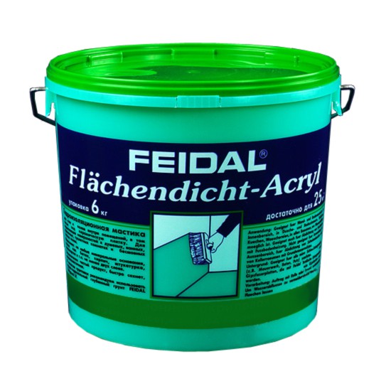 Обеспечить надежную защиту от возможных протечек и сырости позволяет гидроизоляция FEIDAL FLACHENDICHT-ACRYL (5 кг) банка. Она применяется в помещениях с высокими влажностными характеристиками, а также для герметизации оснований находящихся в непосредственном контакте с водой - идеально решение для ванных комнат, санузлов, прачечных, душевых, моечных и так далее.