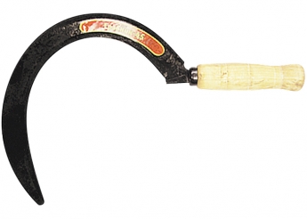 Изготовлен из высококачественной инструментальной стали У8. Имеет короткую деревянную рукоятку. Предназначен для срезания травы на небольших участках.