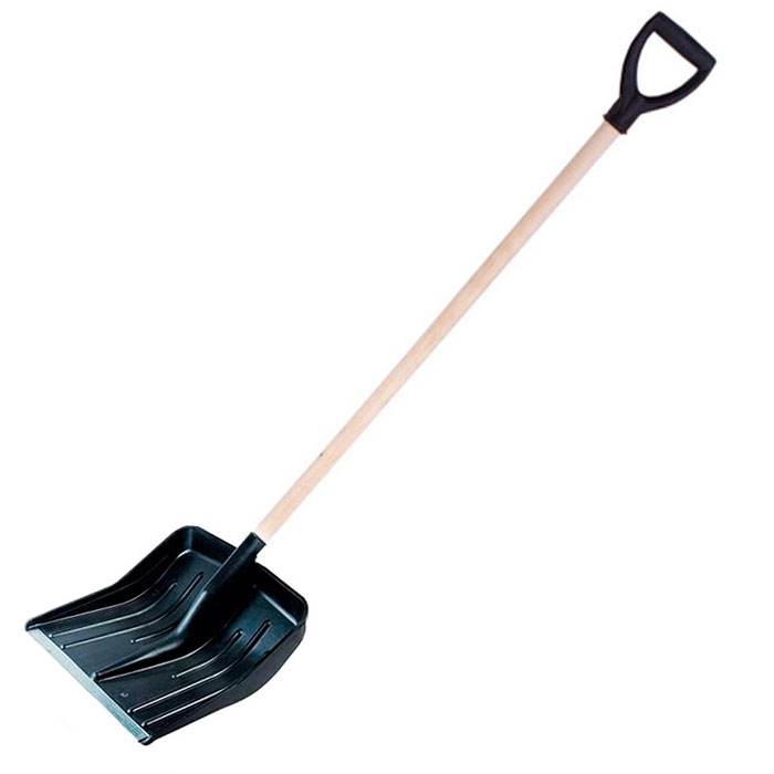 Лопата снеговая пластиковая с деревянным черенком и V-образной ручкой. Инструмент имеет прочную конструкцию и эргономичную форму. Небольшой вес инструмента позволяет эффективно проводить расчистку территории. Ковш выполнен из морозостойкого пластика с металлической планкой.