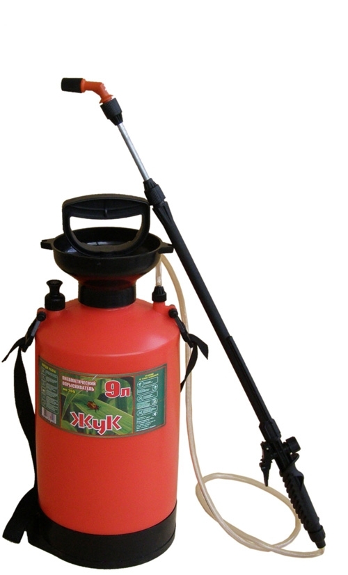 Помповый опрыскиватель для опрыскивания, подкормки и полива растений, кустарников, деревьев средней высоты, картофеля, а также для мытья стен, стекол и других хозяйственных работ. Данная модель имеет отдельную заливную воронку, что удобно при использовании сухих препаратов разведённых водой, которые нужно процедить перед опрыскиванием. Мерная шкала на баке показывает остаток содержимого. Предохранительный клапан срабатывает при избыточном давлении, что обеспечивает безопасность в процессе эксплуатации опрыскивателя.