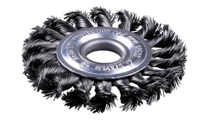 Тип «колесо». Для шлифовальных и отрезных машин. Витая стальная проволока. Посадочный диаметр – 22 мм. Упаковка: картонная коробка.
