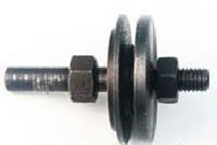 Оправка вставляется в дрель, а в нее отрезной диск, методом прижима шайбы.