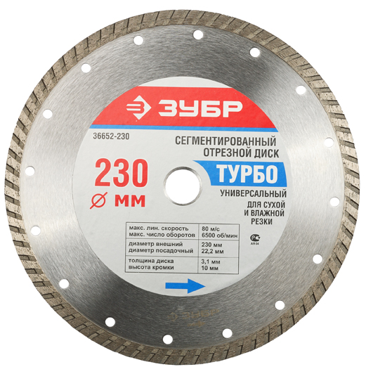 Диск Алмазный Турбо "Зубр" D-230 мм
