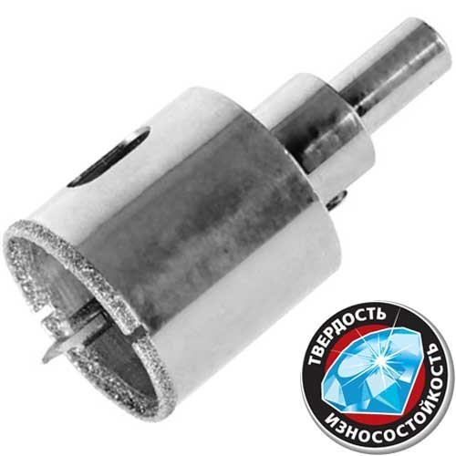 Предназначена для сверления отверстий в керамической и кафельной плитке при обязательном водяном охлаждении. Равномерное распределение режущих алмазных элементов обеспечивает аккуратное сверление материала без трещин и сколов. Является основным видом оснастки для  дрели, шуруповерта.