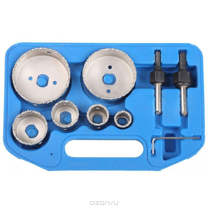 Предназначен для сверления цилиндрических отверстий большого диаметра в керамической и кафельной плитке, ячеистом бетоне, кирпиче в безударном режиме. Используется совместно с основанием-державкой и центрирующим сверлом.
