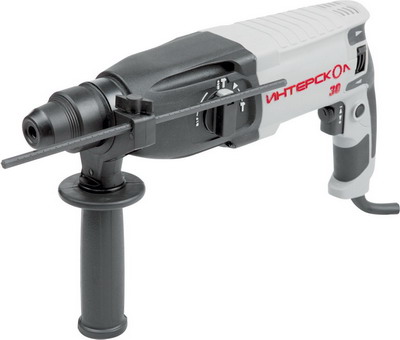 Перфоратор Интерскол П-30/900 ЭР предназначен для свердения, долбления и ударного сверления. Имеет режим ослабления патрона (для фиксации угла поворота), щеточный реверс, резиновые накладки на обеих рукоятках, предохранительную муфту (от заклинивания бура), возможность фиксирования кнопки включения. Корпус инструмента - металлический, что увеличивает срок службы. На курке выключателя имеется колесико для регулирования числа оборотов.