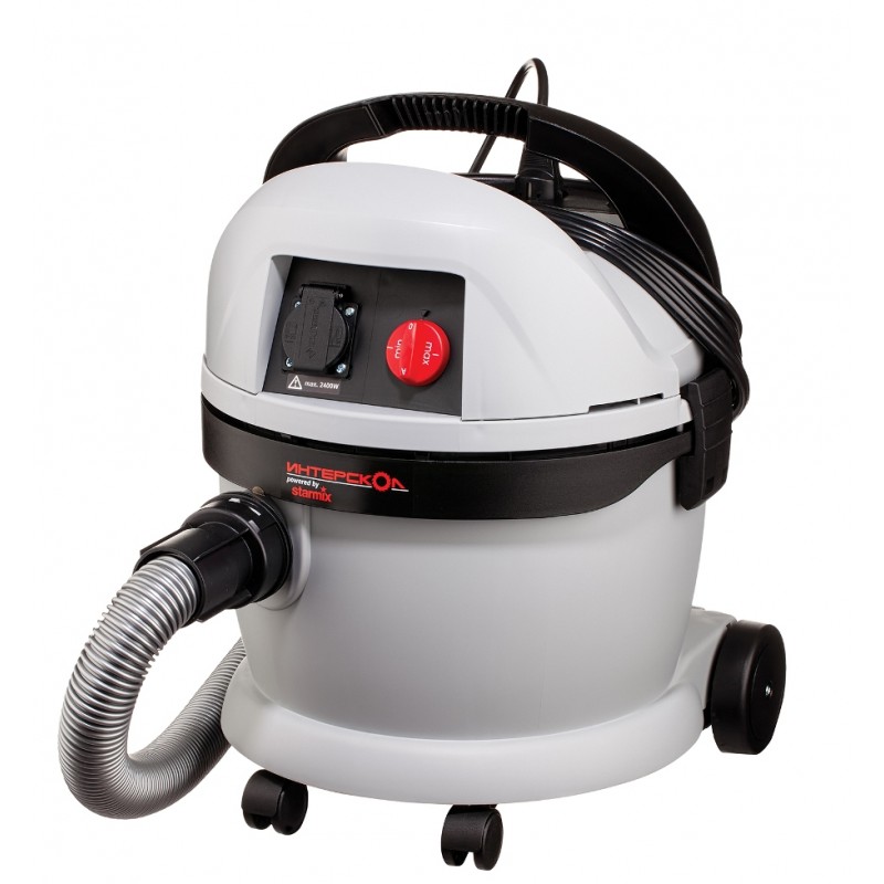 Универсальный пылесос Интерскол ПУ-20/1000 отлично обеспечивает чистоту рабочего места. Есть возможность выбрать режим работы, зависящий от интенсивности деятельности, также можно с помощью специального патрубка подключиться к инструменту, чтобы стружки, пыль и иные отходы производства не засоряли пространство. Пылесос используется и для сухой уборки, и для влажной (уровень воды вэтом случае контролируется автоматически). Пылесос снабжен ручкой и четырьмя колесами, два из которых - поворотные, что обеспечивает удобную транспортировку.