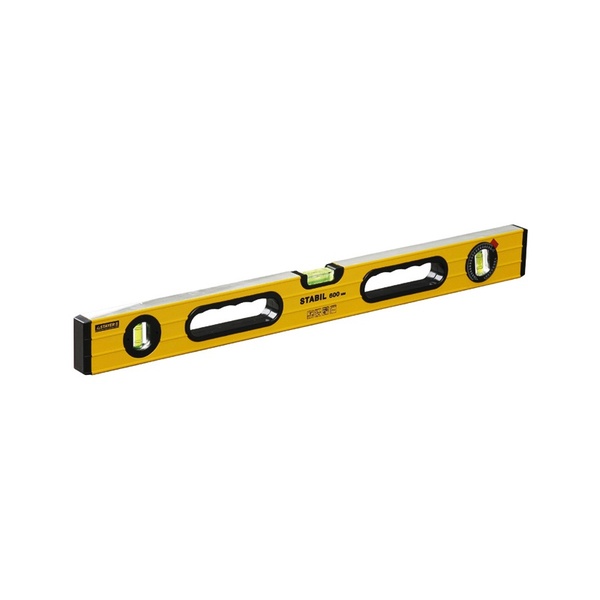 Упрочненный корпус изготовлен из алюминия, что придает уровню малый вес при высоких прочностных характеристиках. Оснащен отфрезерованной рабочей поверхностью (для достижения максимальной точности) и линейкой. Имеет 3 ампулы из полиакрила (горизонтальная, вертикальная и под углом 45°).