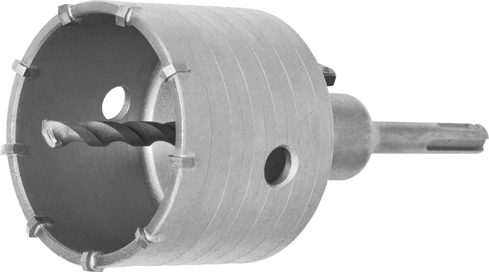 Коронка по кирпичу SDS+ 35 используется для сверления отверстий большого диаметра и подходит для обработки таких материалов, как бетон, камень и кирпич. В конструкции коронкипредусмотрено сверло с наконечником из твердого сплава ВК8 для центрирования. Для более эффективной работы у коронки имеется несколько резцов.