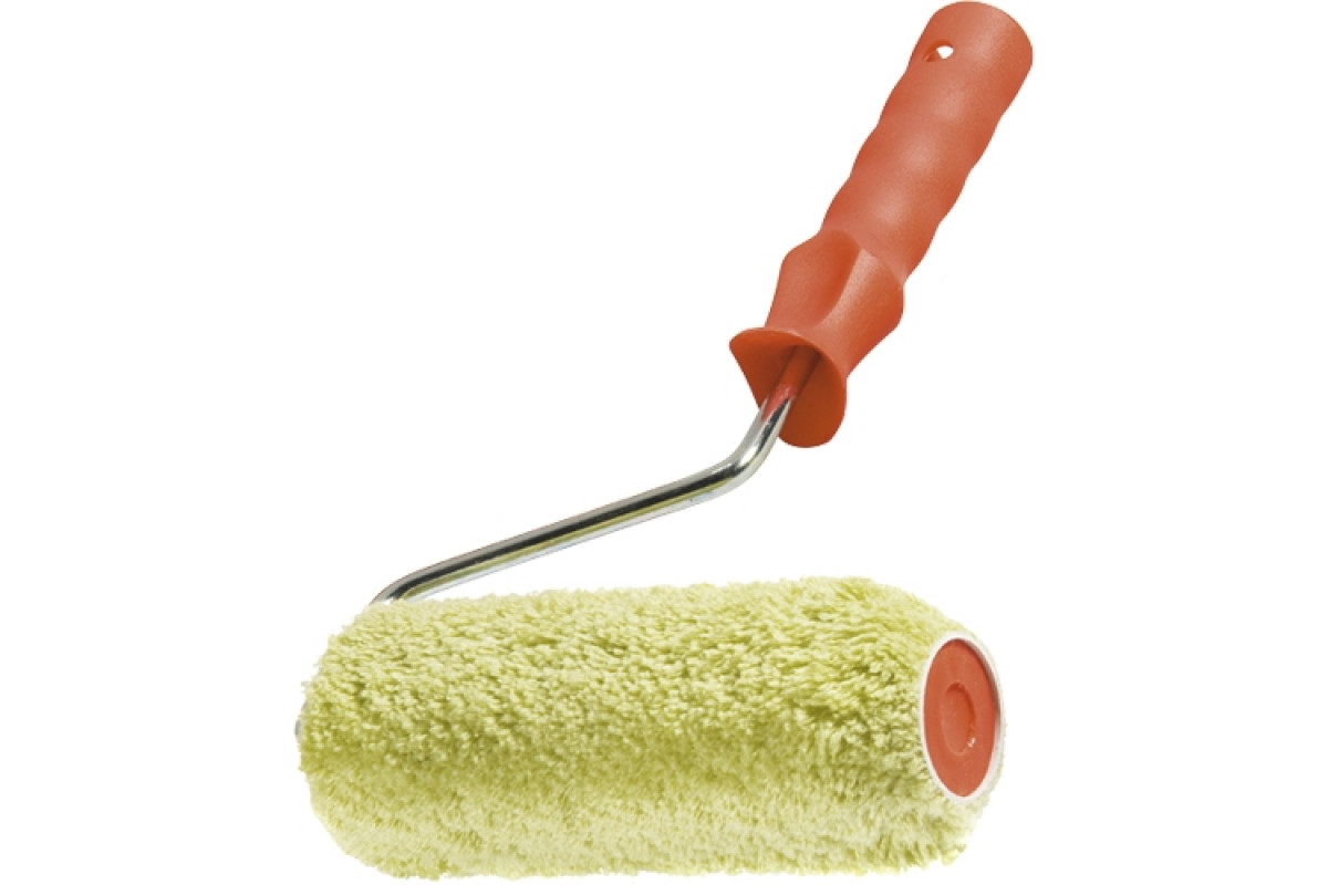 Валик произведен по технологии Termofusion, что обеспечивает высокую износостойкость, так как исключает отслаивание шубки от основания даже при многократном использовании.  Бесшовная структура шубки способствует равномерному нанесению краски на поверхность. Улучшенная конструкция ролика обеспечивает свободное вращение. Ручка в комплекте, бюгель оцинкован.