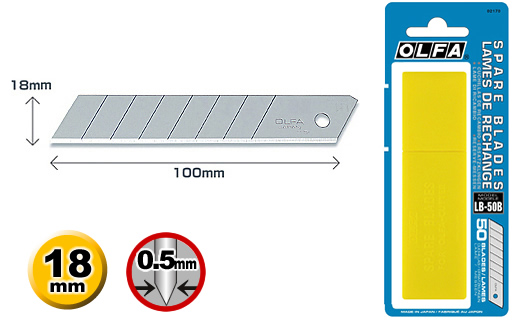 Лезвия сегментированные OLFA OL-LBD-10 Применяются для разрезания различных материалов: линолеума, ковровых покрытий, гипсолитовых плит, гипсокартона, кровельных материалов, пластика, дерева. Ширина лезвия: 18 мм.