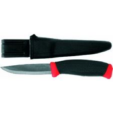 Материал – обрезиненная ручка, пластиковые ножны, углеродистая сталь.