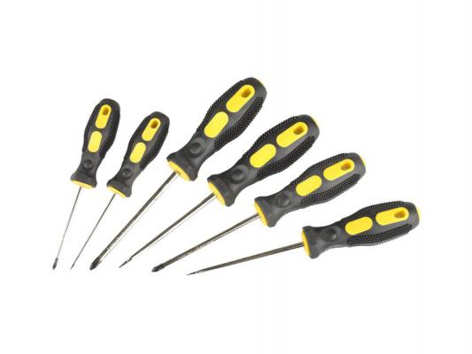 Отвертки Стандарт 6 шт - универсальный набор качественного и надежного инструмента, предназначенного для выполнения монтажа и демонтажа крепежных резьбовых элементов с крестовым или прямым шлицем. Рабочая поверхность стержней инструментов выполнена из прочной хромванадиевой стали с высокой износостойкостью и большим ресурсом использования. Инструменты оснащены намагниченными наконечниками для комфортной работы в ограниченном пространстве и удобными рукоятками, изготовленными из прорезиненного материала. В комплект включено шесть инструментов с прямым и крестообразным шлицом.