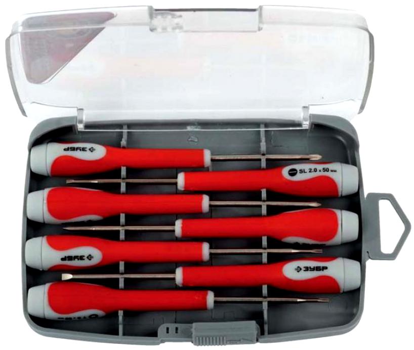 Набор ЗУБР МАСТЕР Отвертки для точных работ, SL2,0, SL2,5, SL3,0; PH00,0; T6, T8; 7 шт - предназначен для профессионального применения.