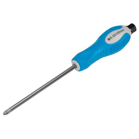 Свозной шестигранный стержень с усилителем под ключ изготовлен из закаленной особым образом хромованадиевой стали; отвертка оснащена удобной противоскользящей двухкомпонентной рукояткой; тип шлица - PH №2.