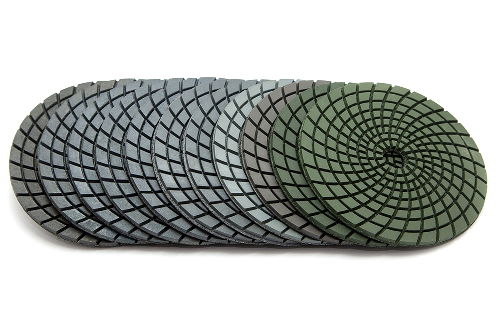 Алмазный гибкий шлифовальный круг (черепашка) для шлифовки плитки и камня. Диск подходит для чистовой шлифовки керамогранита и мягкой керамики. Используется совместно с насадкой-липучкой и УШМ (болгаркой). Рекомендованное количество оборотов на УШМ: 3000-6000 об/мин (низкие обороты).