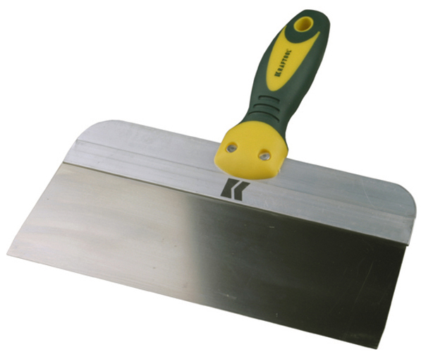 Шпатель Kraftool фасадные используется для нанесения и выравнивания штукатурных и шпаклевочных смесей на большие по площади обрабатываемые поверхности, как правило это фасады зданий или большие внутренние помещения. Такой тип шпателя позволяет за одно нанесение наносить большое количество раствора.