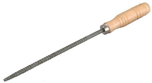 Рашпиль круглый с деревянной предназначен для обработки вогнутых поверхностей из дерева, пластика, фанеры, ДВП и подобных материалов. Имеет круглую форму.
