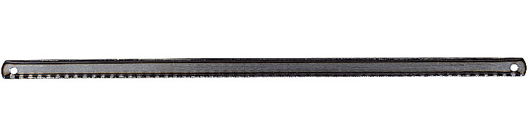 Полотно для ножовки по металлу представляет собой тонкую ленту, выполненную из твердого вида стали. Несмотря на то, что это единственная металлическая часть в конструкции пилы, она же является и самой уязвимой к поломке, так как толщина изделия очень мала. По этой причине при работе с данным инструментом очень важно следить за своими действиями. Неаккуратное и неосторожное обращение приведет к быстрой поломке хрупкого элемента конструкции.