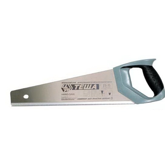 Ножовка «Теща» используется при пильных работах по Ламинату и пластику. Зубья имеют трехгранную форму, что обеспечивает качество и большую скорость работы, а также гладкую поверхность кромок и отсутствие поперечных зажимаемых усилий (благодаря разводке зубьев), как конечный результат.