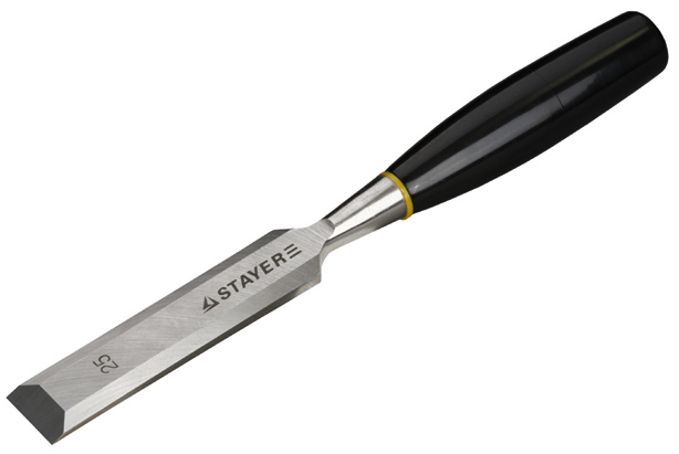 Стамеска Stayer Евро плоская предназначена для плотницких и столярных работ с древесиной мягких и твердых парод. При помощи стамески в дереве можно делать отверстия, выемки, пазы, врезать замки, «подгонять» деревянные конструкции и т.п.