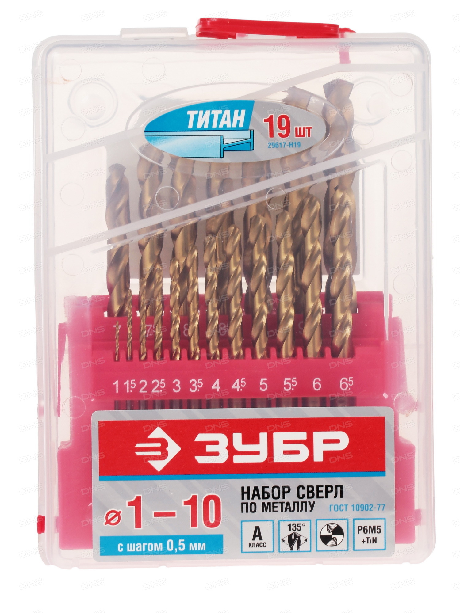Набор сверл по металлу Зубр (19 шт) 29617-Н19