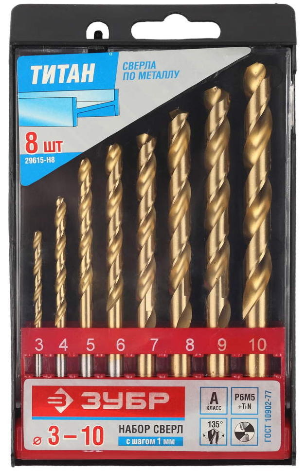 Набор ЗУБР Свёрла  по металлу 4-29625-Н8, цилиндрический хвостовик, быстрорежущая сталь Р6М5, 3-10 мм, 8 шт