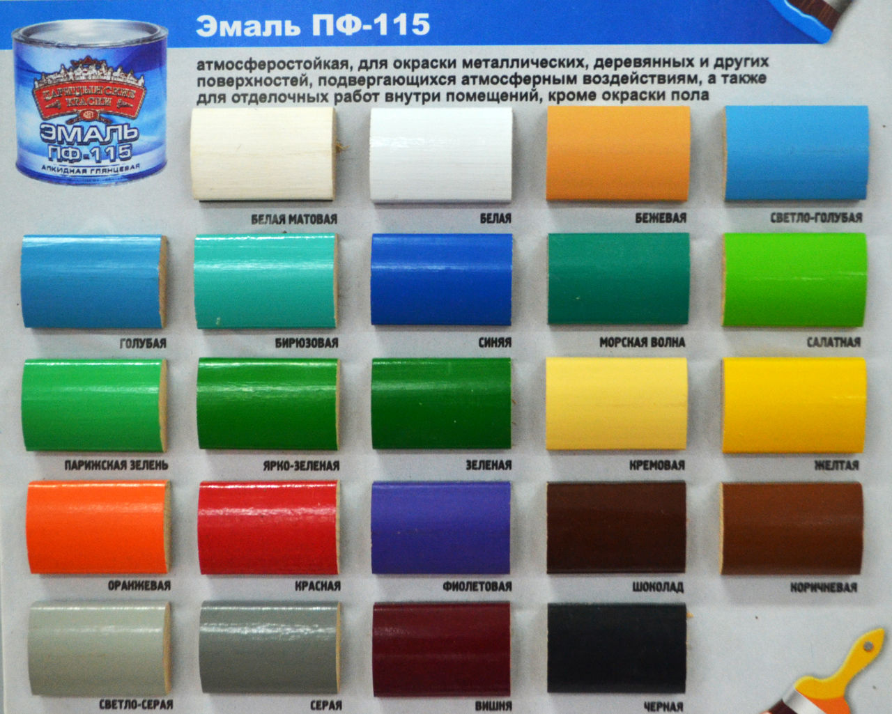 Эмаль ПФ-115 главным образом предназначена для окраски предварительно загрунтованных металлических поверхностей, эксплуатирующихся в условиях умеренного, холодного и тропического климата. Также эмаль широко применяется и для окраски деревянных поверхностей, а в некоторых случаях допустима окраска предварительно подготовленных бетонных поверхностей. Пленка эмали стойкая к перепадам температур от -50°С до +60°С и воздействию ультрафиолетового излучения.