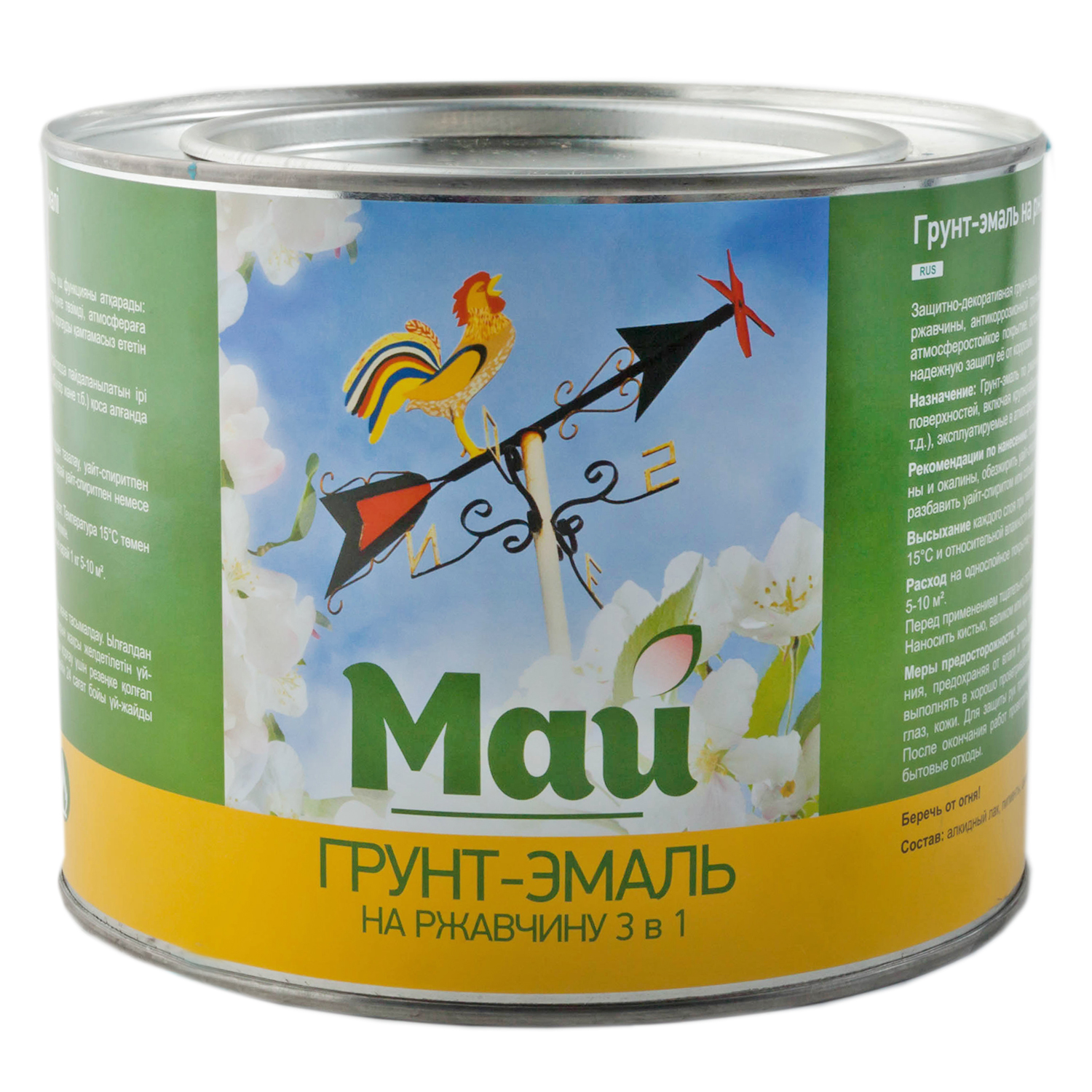 Грунт-эмаль по ржавчине Май 3 в 1 предназначена для окрашивания чистых и ржавых металлических поверхностей, включая крупногабаритные конструкции, изделия сложной конфигурации (решетки, трубы, ограды и т.д.), эксплуатируемые в атмосферных условиях. Также допускается окрашивание деревянных поверхностей.