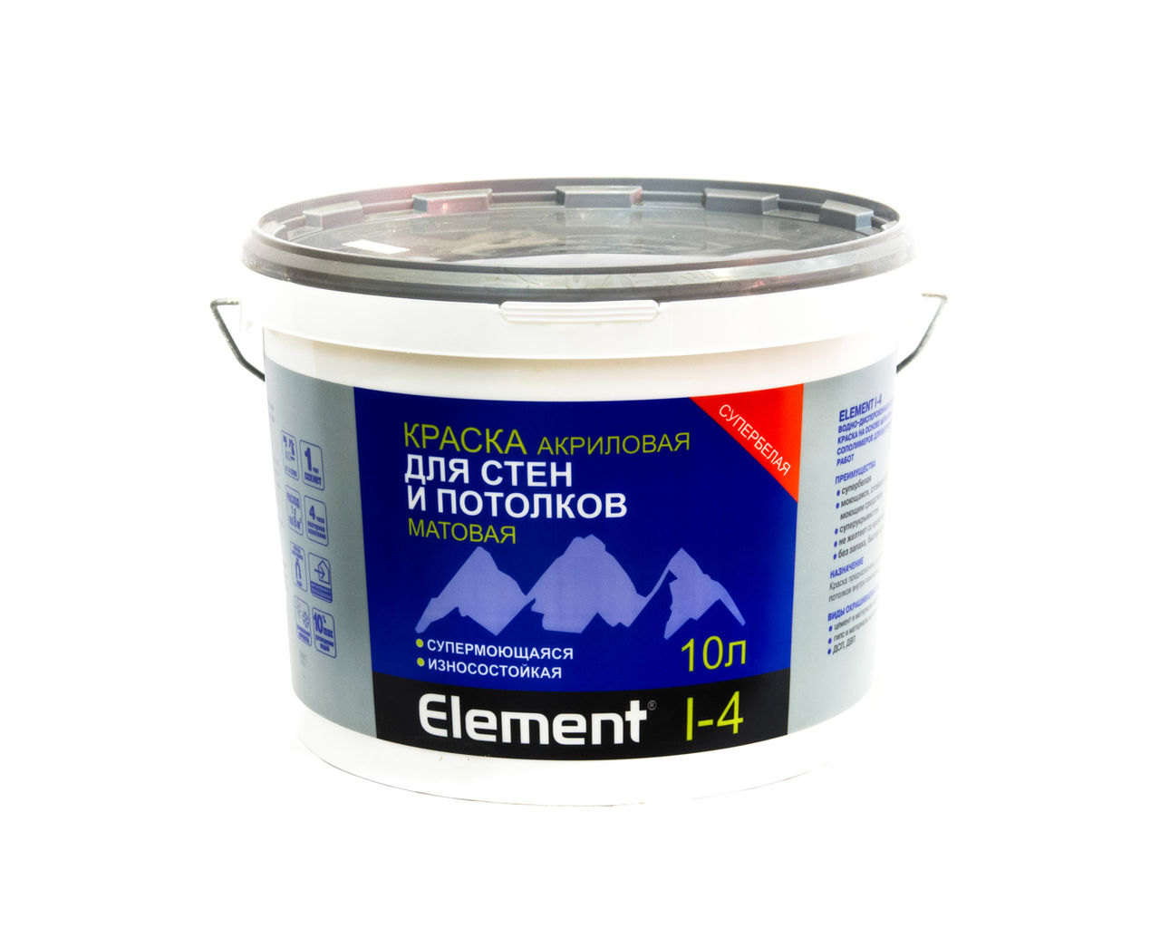 Элемент I-4 Краска акриловая для стен и потолков Супербелая 5 л оптом и в розницу