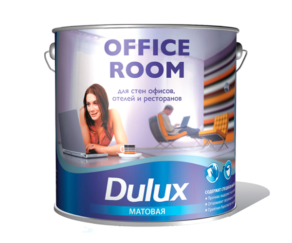 Office Room - краска, разработанная специально для коммерческих помещений, таких как офисы, кафе, столовые и пр. Обладает повышенной грязе-водооталкиващей способностью. Легко и многократно моется. Менее подвержена загрязнениям.