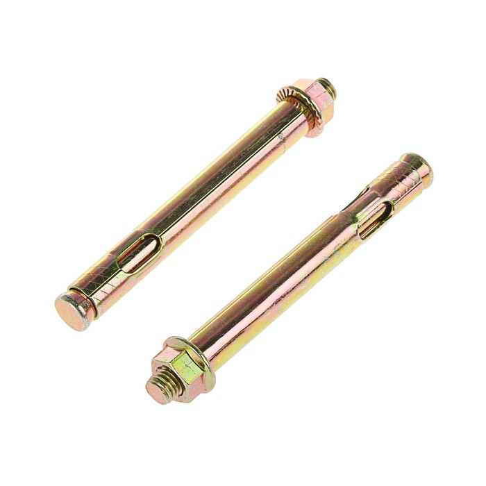 Анкер с гайкой предназначен для надежного крепления тяжелых конструкций из разных материалов (двери, ворота, кабельные трасы, подвесные потолки, люстры, спортинвентарь, и т.п.). Анкер забивается в твердые основания такие как бетон, кирпич, камень по более рыхлым основаниям не применять.