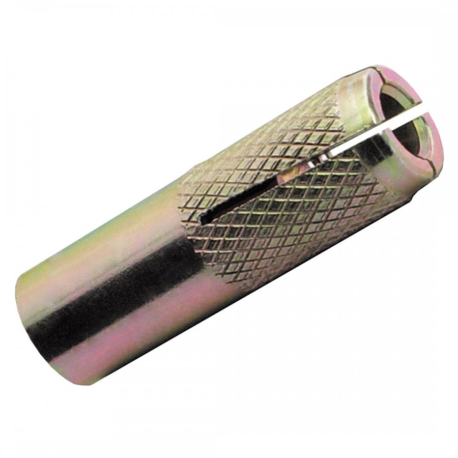 Анкер забивной представляет собой полый цилиндр. С одной стороны имеется внутренняя резьба, с другой стороны распорная зона из четырех сегментов. Для обеспечения контролируемого расклинивания внутри полого цилиндра расположен сердечник (конус).