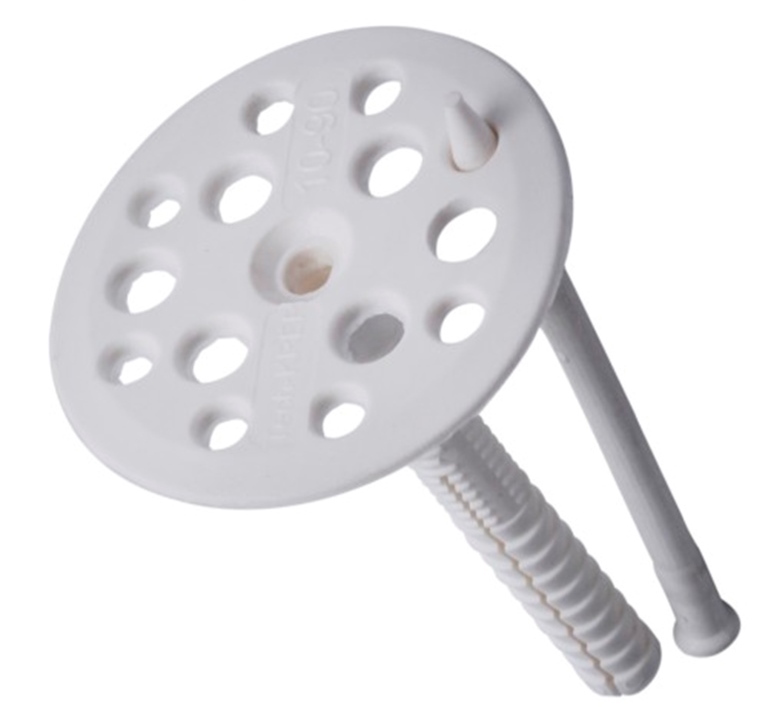 Дюбель для изоляции гриб с пластиковым сердечником предназначается для закрепления пенополистерола и минеральной ваты к бетону, кирпичу, пустотелым основаниям. Представляет собой «пластиковый гриб» с большой шляпкой, которая способствует хорошему прижиманию изоляционных материалов.