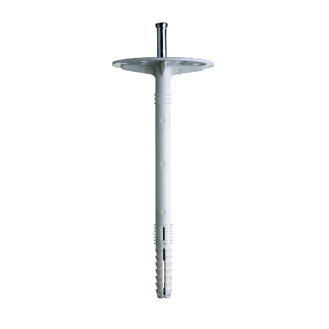 Дюбель для изоляции гриб с пластиковым сердечником предназначается для закрепления пенополистерола и минеральной ваты к бетону, кирпичу, пустотелым основаниям. Представляет собой «пластиковый гриб» с большой шляпкой, которая способствует хорошему прижиманию изоляционных материалов.