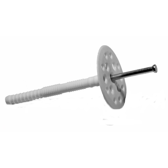 Тарельчатый воротник, или шляпка — конструктивная особенность, которая отличает дюбель-гвоздь гриб. За счёт неё обеспечивается наилучший контакт, а крепёжное отверстие не становится причиной теплопотерь. Этой же цели — минимизации потерь тепла — служат поперечные насечки на теле дюбеля. Сам же он изготовлен из прочного полипропилена.