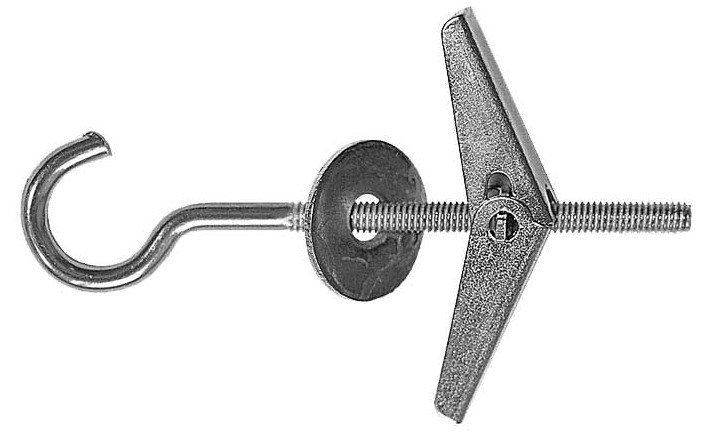Крюк предназначен для закрепления легких конструкций к пустотелым материалам (ДСП, гипсокартон).