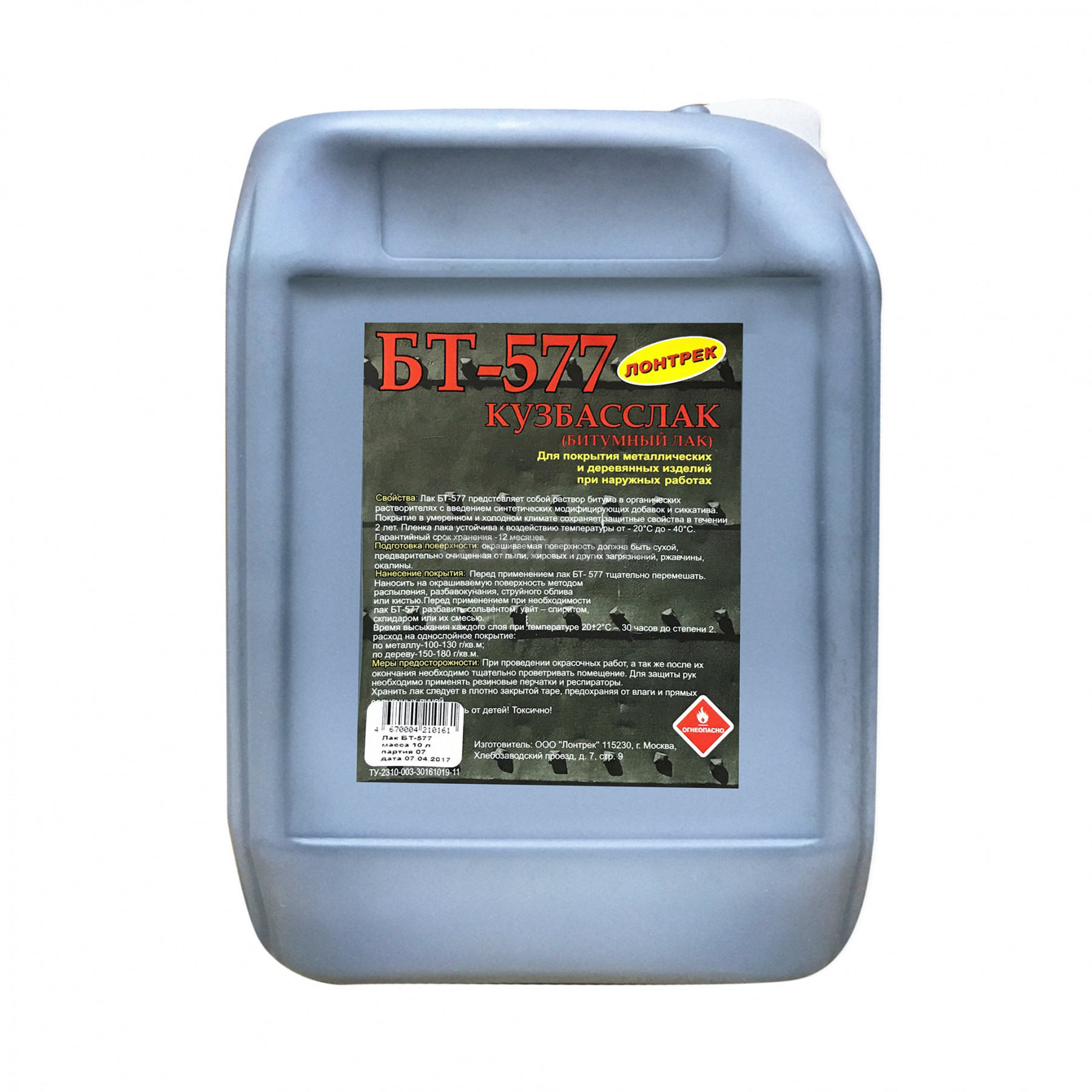 Лак БТ-577 - универсальный, им грунтуют и защищают поверхности и материалы. Изготовлен добавлением нефтяного битума в растворители. Синтетические добавки улучшают влагозащитные качества и уменьшают время высыхания. Лак можно использовать при низких температурах – до -40°С, защита при этом сохраняется до двух лет.