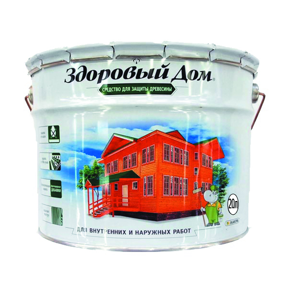 Здоровый дом (Орех) 20 л. Деревозащитное средство Здоровый Дом это высокоэффективное средство для защиты и декоративной отделки древесины. Защищает от влаги, ультрафиолетовых лучей и других атмосферных воздействий. Препятствует гниению, образованию плесени и древесной синевы, обеспечивает надежную защиту деревянной поверхности от насекомых-вредителей. Применяется для покрытия внутренних и наружных стен, балконов, перил, плинтусов, лестниц, заборов, садовых строений, фасадов домов, срубов, оконных рам и других конструкций из дерева, фанеры, ДСП и ДВП.