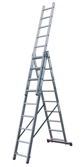 • шарнирный элемент работает бесперебойно и плавно, а так же обеспечивает легкое приведение лестницы в нужное вам положение, а выдвижение 3 секции происходит так же легко и приводится в действие одной рукой;