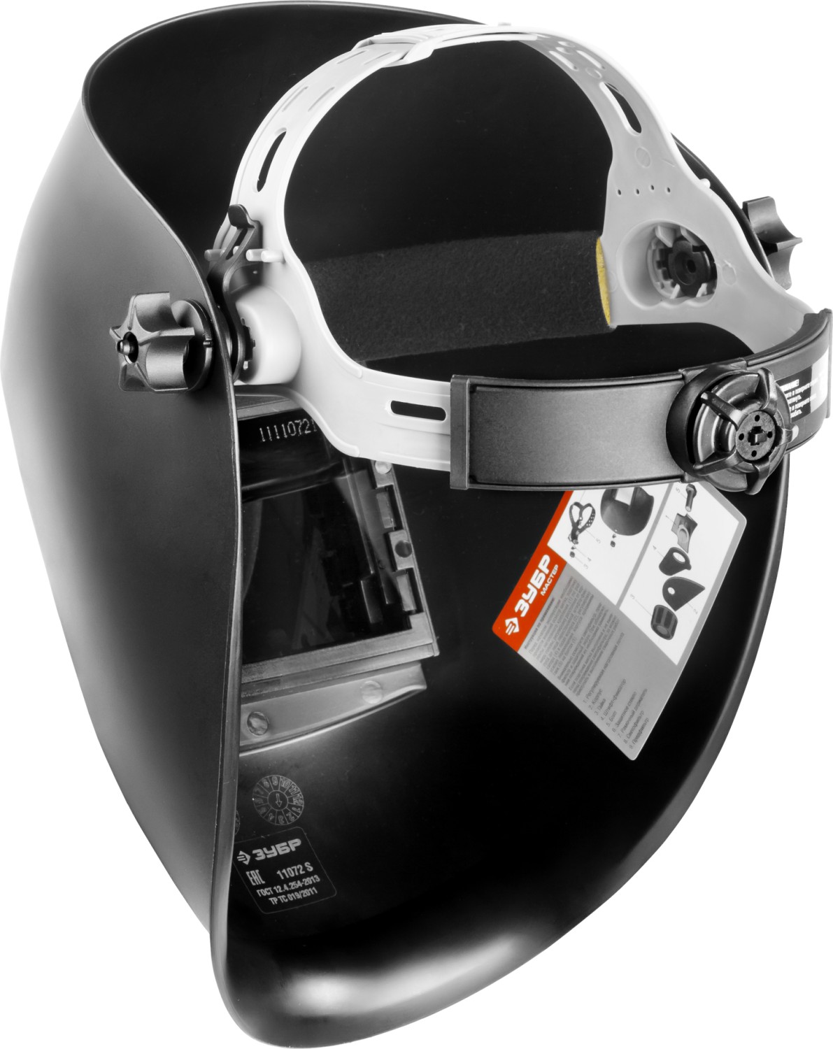 Маска сварщика ЗУБР 11072, предназначена для индивидуальной защиты лица и глаз сварщика от яркого светового, ультрафиолетового и инфракрасного излучения, брызг расплавленного металла и искр при выполнении сварочных работ, резке и пайке металла. Маска сварщика ЗУБР 11072 выполнена из особопрочного термостойкого пластика. Термостойкий светофильтр превосходно защищает глаза. Плавная регулировка наголовной ленты по размеру головы от 54 до 62 см с помощью храпового механизма. Регулировка по высоте осуществляется с помощью реечного пошагового механизма. Легкая и быстрая замена покровного стекла, светофильтра и подложки. Откидная конструкция светофильтра позволяет проводить все работы, не поднимая щиток.