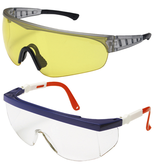 Очки защитные для защиты области глаз от травмирования летящими частицами, стружкой и пылью, агрессивными парами и брызгами разъедающих жидкостей.