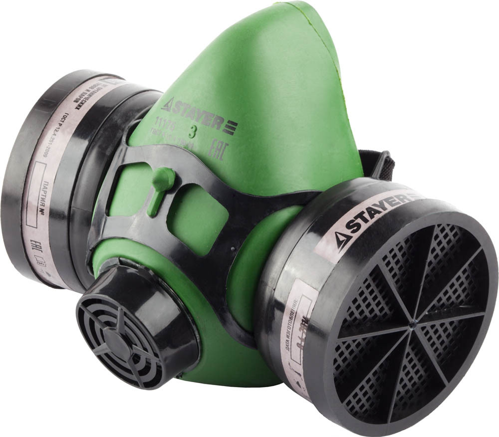 Полумаска STAYER фильтрующая противогазная,серия MASTER, в комплекте с 2 противогазовыми фильтрами марки А1 ( 11175 ) Предназначена для защиты от органических газов и паров с температурой кипения свыше 65°С. Полумаски со сменными фильтрами – эффективная защита органов дыхания при бытовом и профессиональном применении. • Простое и удобное крепление оголовья позволяет надежно зафиксировать полумаску на голове • Система удаления избыточной влаги из подмасочного пространства • Особая форма полумаски обеспечивает плотное и удобное прилегание к лицу • Благодаря двум сменным фильтрам достигается лучшая фильтрация воздуха • Быстрая замена фильтров • Тип фильтра: А1 • Количество фильтров в комплекте: 2 (установлены)