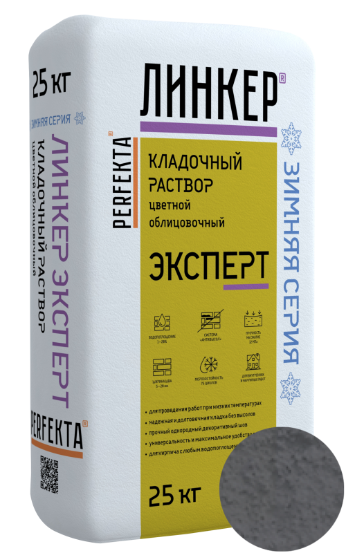 ЦВЕТНОЙ ОБЛИЦОВОЧНЫЙ КЛАДОЧНЫЙ РАСТВОР Perfekta® "ЛИНКЕР Эксперт" ЗИМНЯЯ СЕРИЯ предназначен для выполнения работ при отрицательных температурах по созданию прочного, долговечного, паропроницаемого, водо- и морозостойкого кладочного шва между элементами кладки с любым водопоглощением (полнотелый и пустотелый облицовочный керамический и клинкерный кирпич, рядовой керамический и силикатный кирпич, кирпичи или блоки из бетона и натурального камня) с одновременной декоративной расшивкой швов кладки.