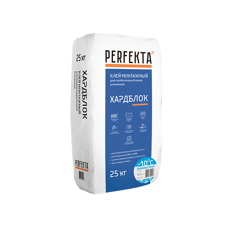 Позволяет осуществлять кладку толщиной шва от 1 мм, предотвращая возникновение термических мостиков между блоками. Водо- и морозостойкий. Обладает высокой прочностью и адгезией. Высокая пластичность делает материал удобным в работе.