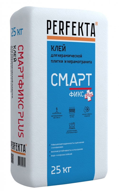 КЛЕЙ Perfekta® “СМАРТФИКС” предназначен для укладки на пол и стены всех видов керамической плитки весом до 500 г/100 см² и облицовки керамогранитом размером до 30х30 см.