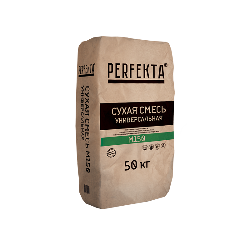 СУХАЯ СМЕСЬ Perfekta® М150 "УНИВЕРСАЛЬНАЯ" предназначена для монтажных, кладочных, штукатурных работ и устройства стяжек.