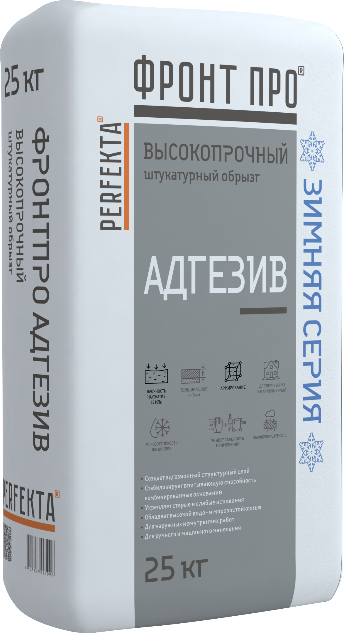 ВЫСОКОПРОЧНЫЙ ШТУКАТУРНЫЙ ОБРЫЗГ Perfekta® “ФРОНТПРО” Адгезив применяется для подготовки оснований из монолитного и сборного бетона, кирпичной и каменной кладки, а так же из пено- и газобетонных блоков под последующее нанесение цементных, цементно-известковых и гипсовых штукатурок.